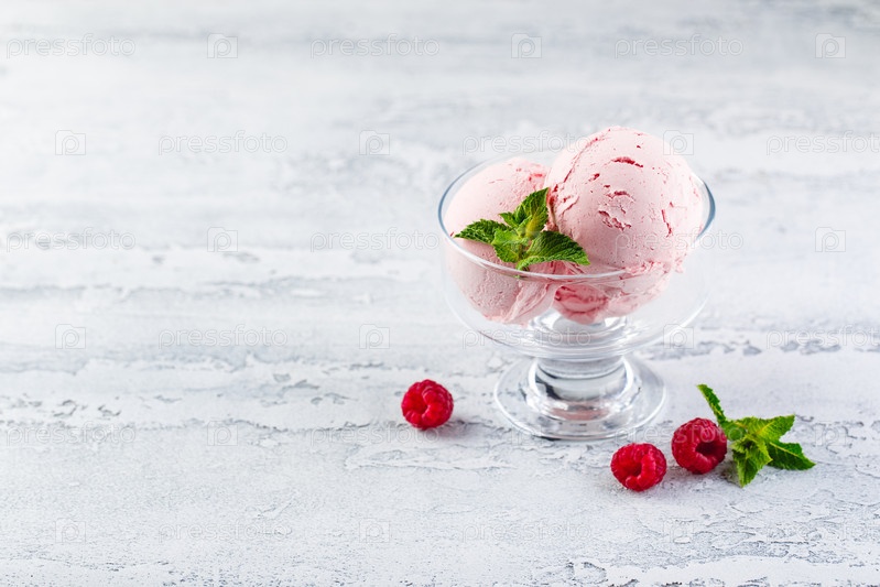 Малиновое мороженое в миске
