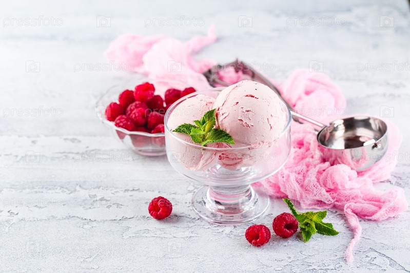 Малиновое мороженое в миске
