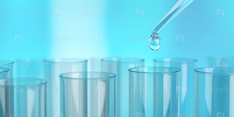 Пробирки и колбы в медицинской лаборатории. Биотехнологический фон