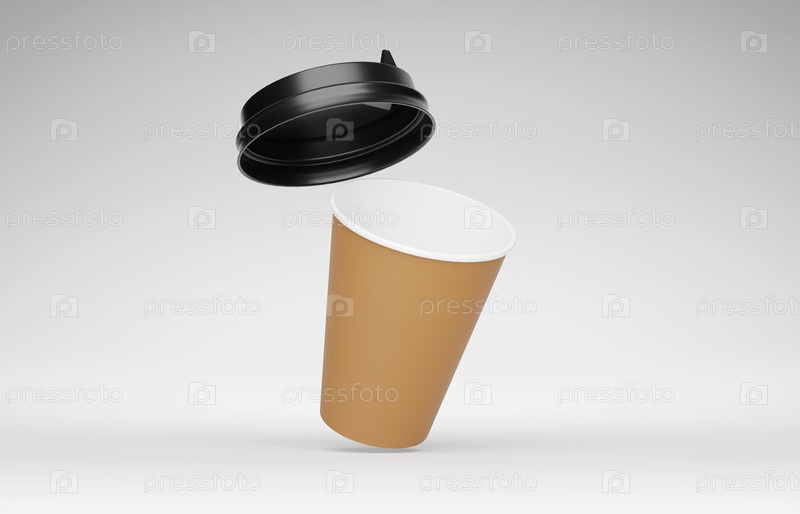 Кофейная чашка с макетом крышки. Изолированные на белом фоне