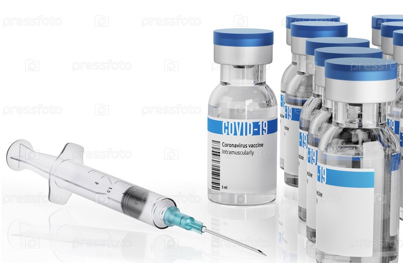 Флакон с вакциной ковид-19, изолированный на белом