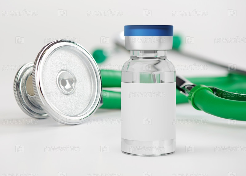 Макет флакона с вакциной, изолированной на белом