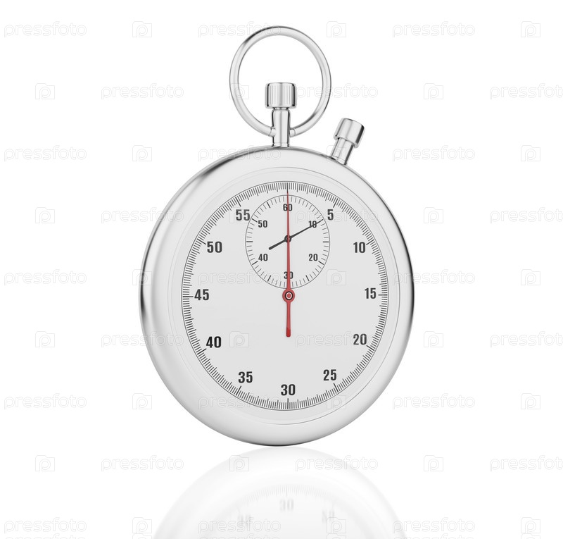 Классический металлический хромированный механический секундомер, изолированный на белом