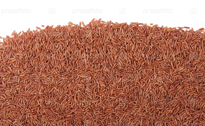 Сырой красный рис на белом фоне