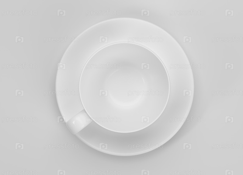 Чашка кофе или чая с блюдцем сверху на белом фоне
