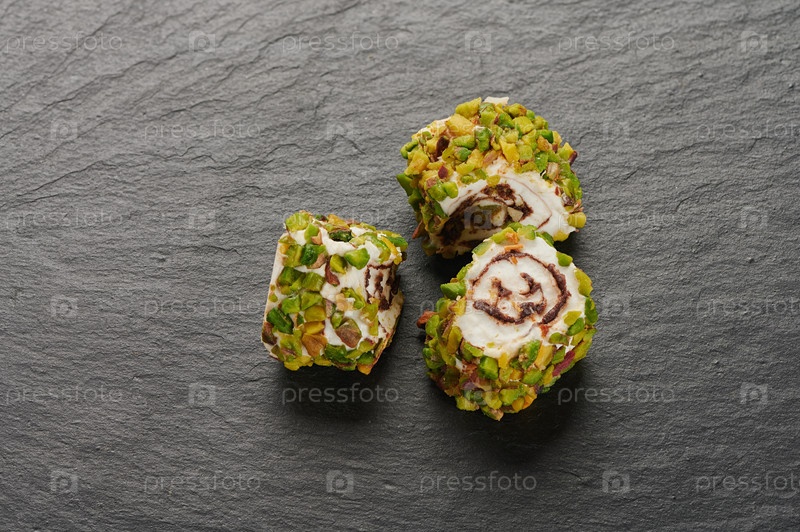 Сладости рахат-лукума на каменной доске