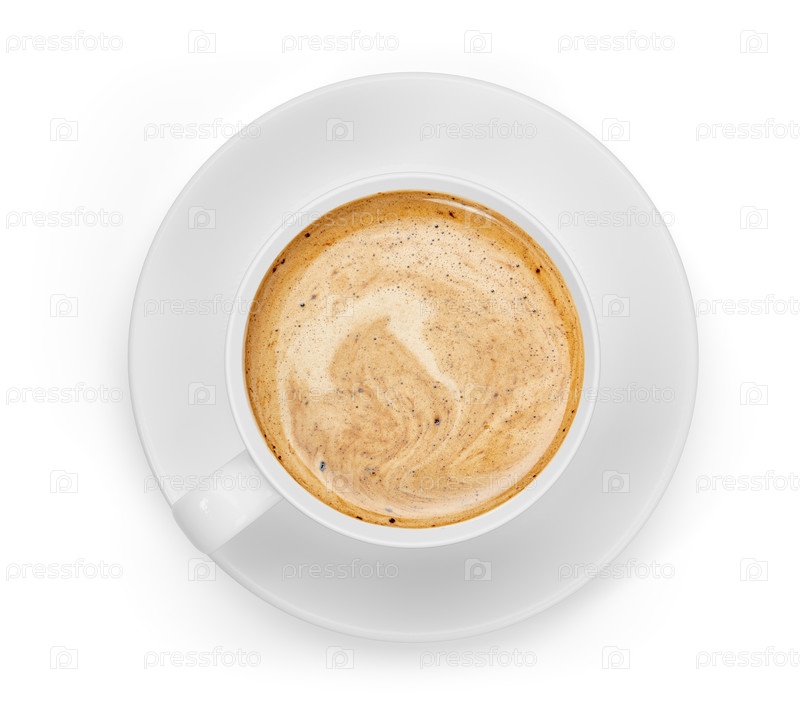 Чашка с кофе, вид сверху, изолированные на белом фоне