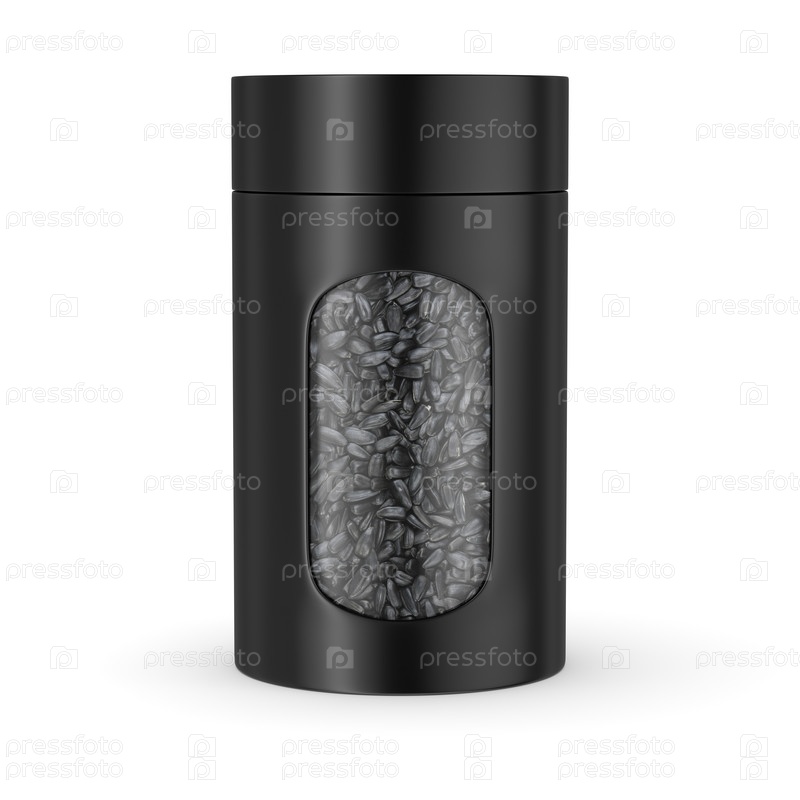 Пищевая банка с семенами подсолнечника, изолированными на белом