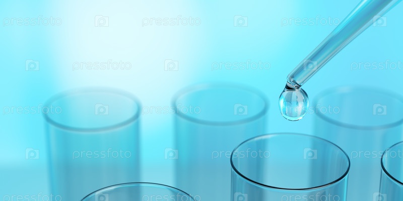 Пробирки и колбы в медицинской лаборатории. Биотехнологический фон