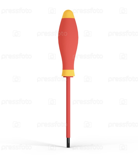 Крестообразная отвертка с резиновой ручкой на белом фоне