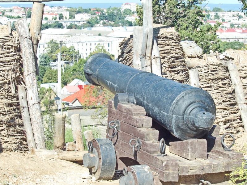 Оборонительное укрепление, батарея №44 Житкова, мемориальный комплекс Малахов курган. Оружие середины 19 века. Севастополь, Россия, сентябрь 2021