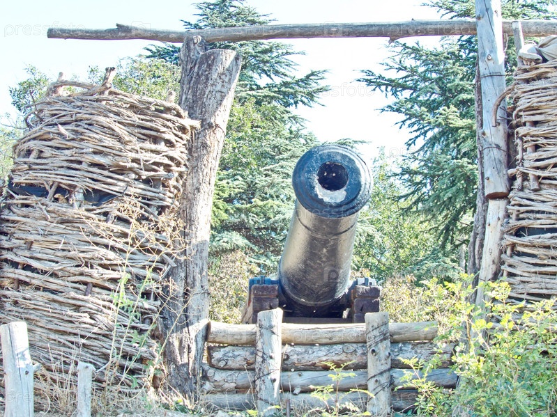 Оборонительное укрепление, батарея №44 Житкова, мемориальный комплекс Малахов курган. Оружие середины 19 века. Севастополь, Россия, сентябрь 2021