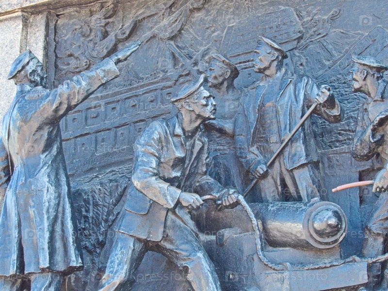 Фрагмент горельефа "Синопская битва" на постаменте памятника П.Нахимову. Памятник открыт 18 ноября 1898 года, в 45-ю годовщину Синопской битвы. Севастополь, Россия, сентябрь 2021