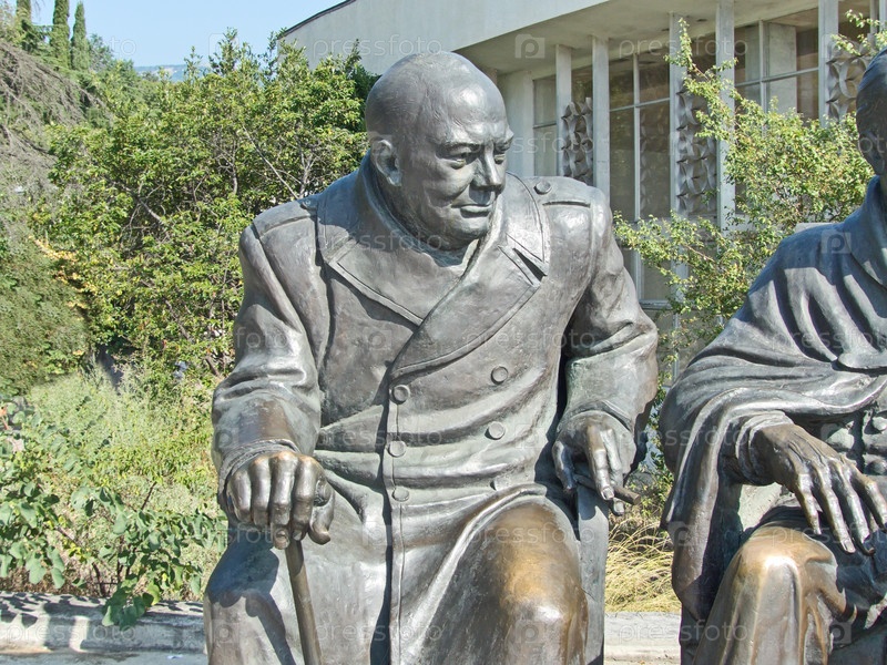Уинстон Черчилль. Фрагмент памятника Сталину, Черчиллю и Рузвельту является знаменитой сценой фотосессии лидеров «большой тройки» антигитлеровской коалиции в итальянском дворике Ливадийского дворца во время Ялтинской конференции в феврале 1945. Южный бере