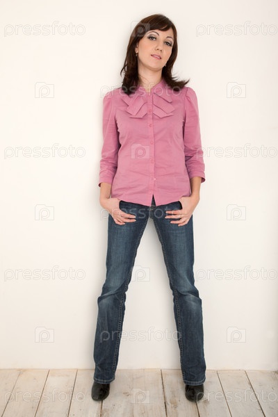 Девушка в розовой рубашке и джинсах