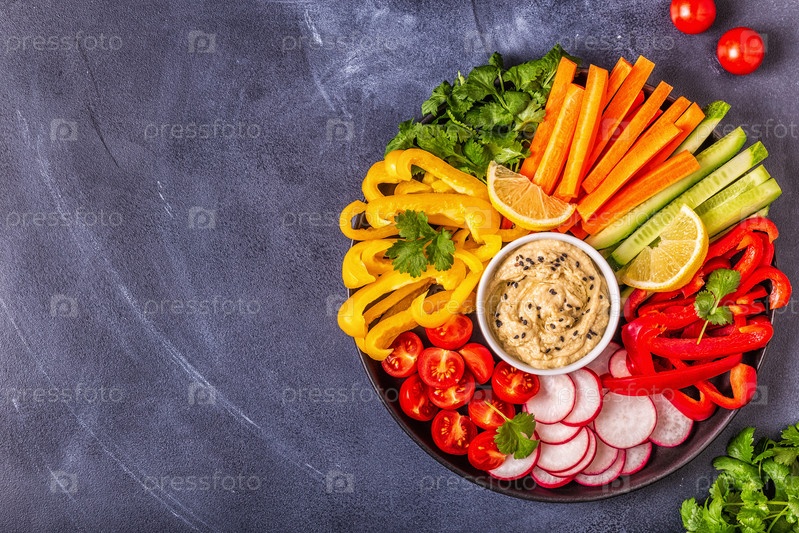 Домашний хумус со свежими овощами