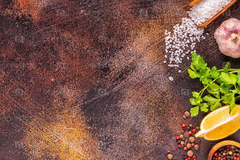 Еда фон с овощами, специями, травами