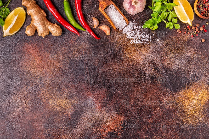 Еда фон с овощами, специями, травами