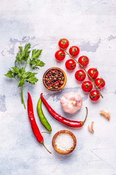 Еда фон с овощами, специями, травами