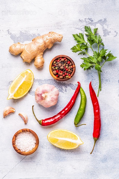 Еда фон с овощами, специями, травами