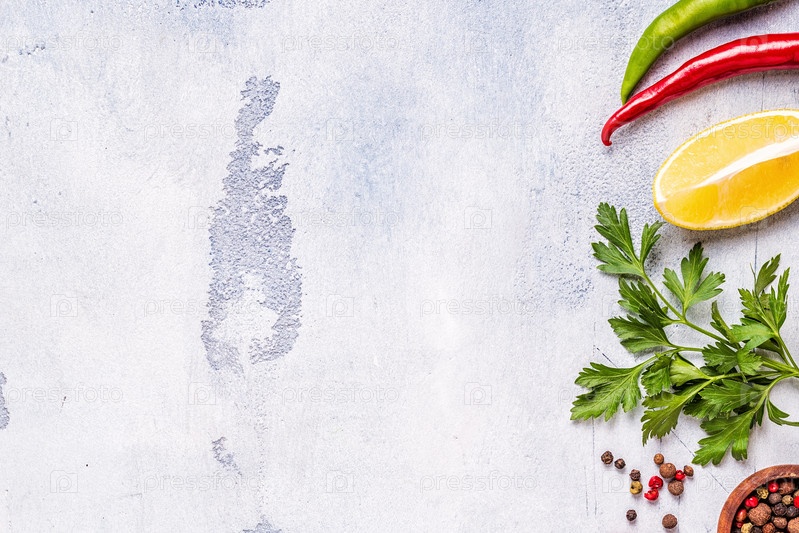 Еда фон с овощами, специями, травами