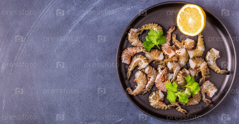 Сырые креветки с петрушкой и лимоном