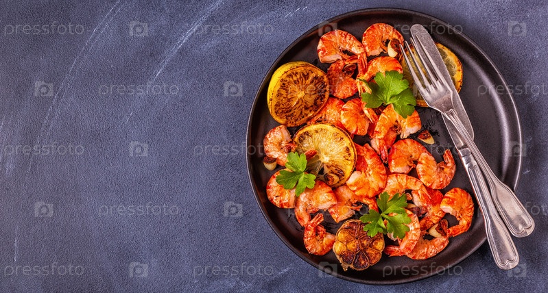 Креветки на гриле с лимонной петрушкой и чесноком