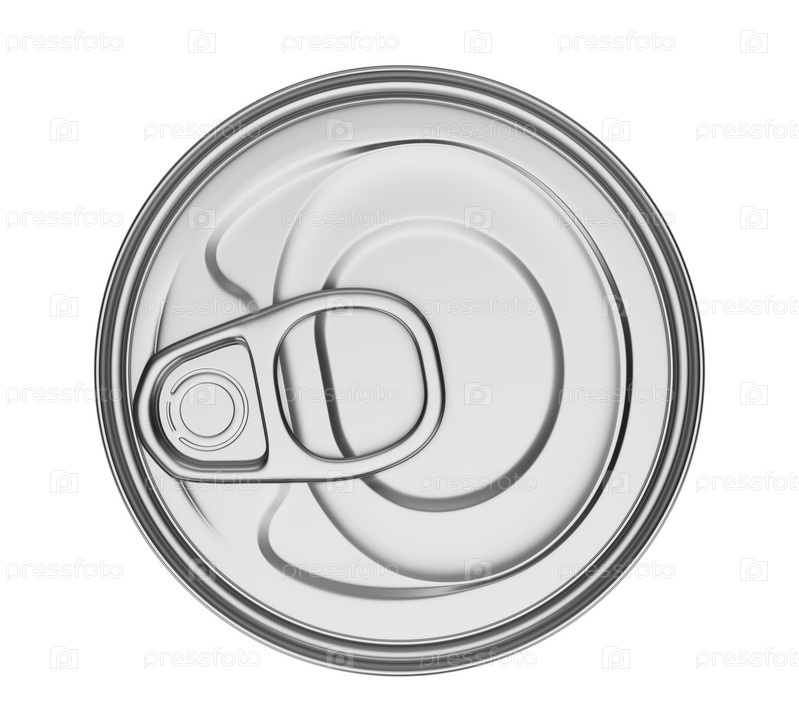 Жестяная банка для сохранения пищи вид сверху. Изолированные на белом фоне