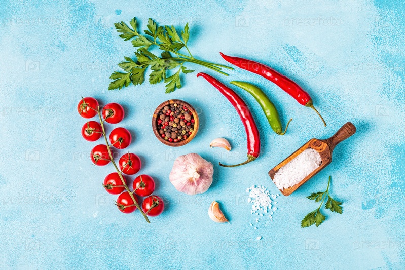 Еда фон с овощами, специями, травами