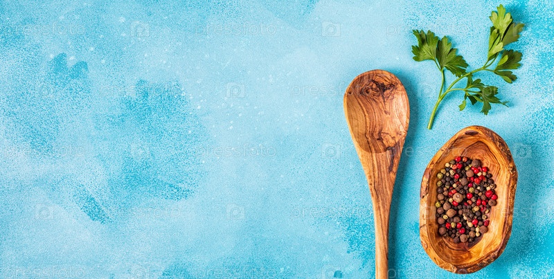 Специи и травы с деревянной ложкой