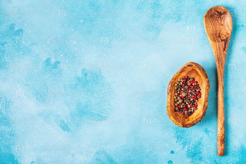 Специи и травы с деревянной ложкой