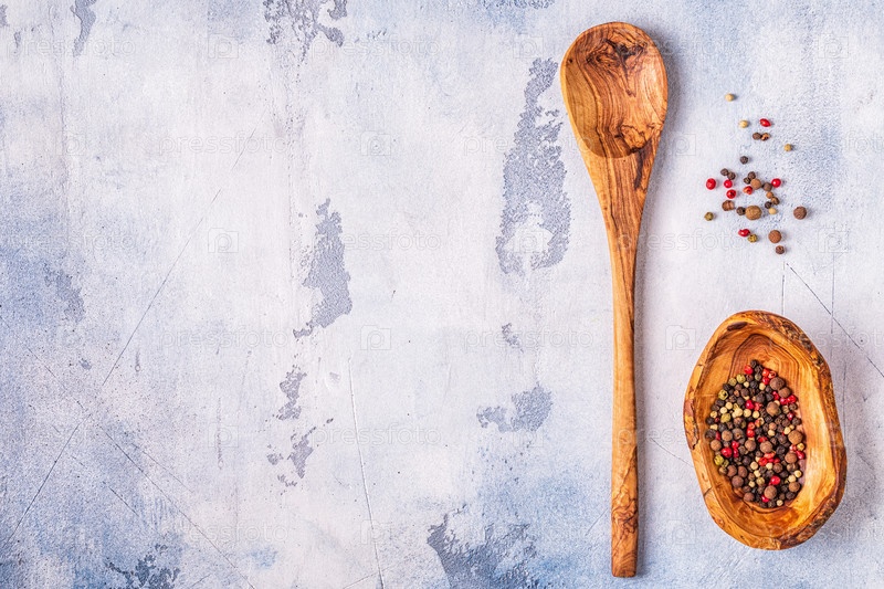 Специи и травы с деревянной ложкой