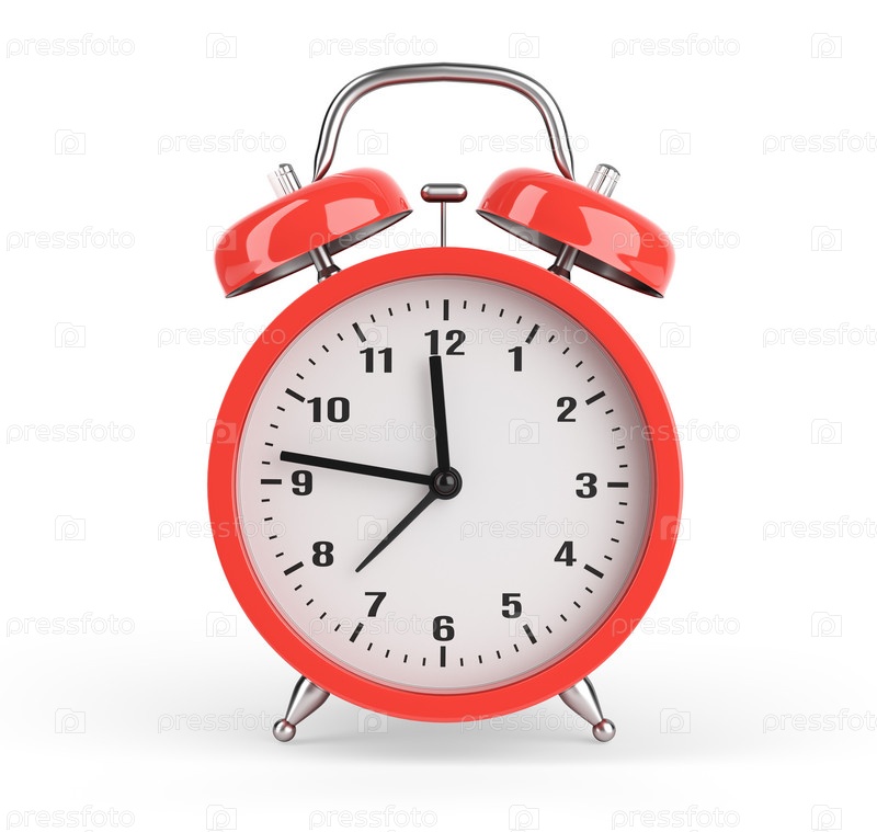 Красный будильник на белом фоне