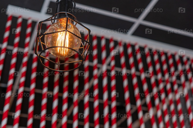 Винтажная лампа накаливания Эдисона, ретро-стиль в кафе, теплый фон