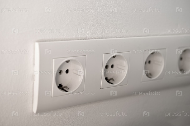 Белые розетки для электроприборов в офисе