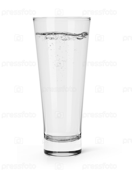 Стакан с кристально минеральной водой, изолированный на белом