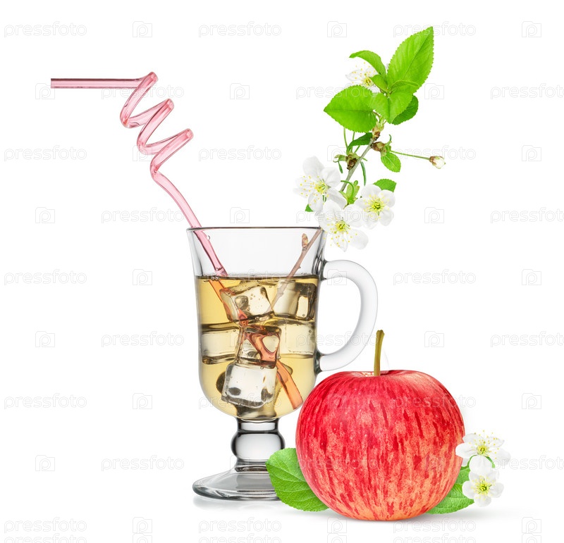 Яблочный сок в стакане, изолированные на белом фоне