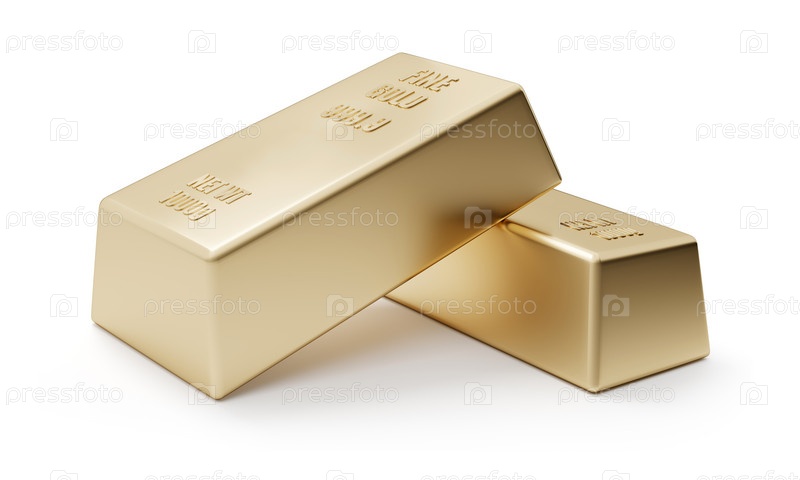 Два золотых слитка на белом фоне