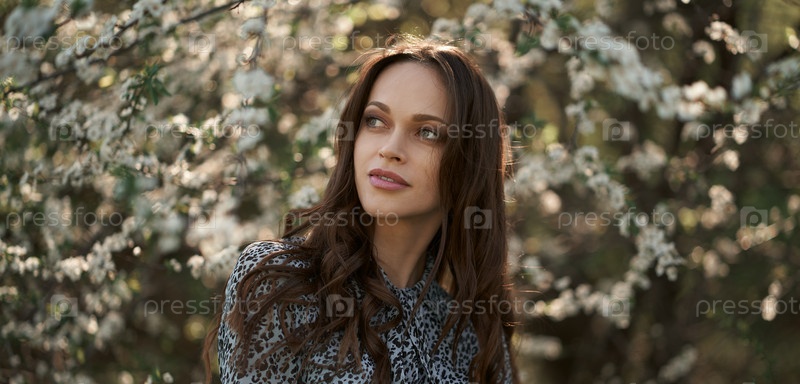 Красивая брюнетка в весеннем парке