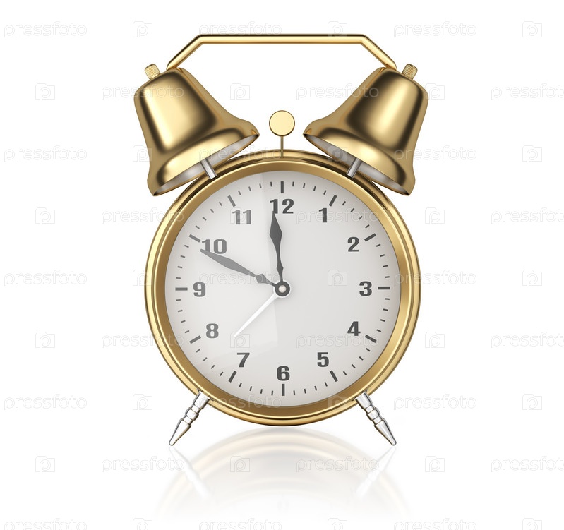 Ретро золотой будильник на белом фоне