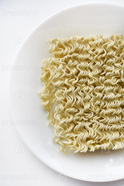 Лапша быстрого приготовления на тарелке. Вермишель крупным планом