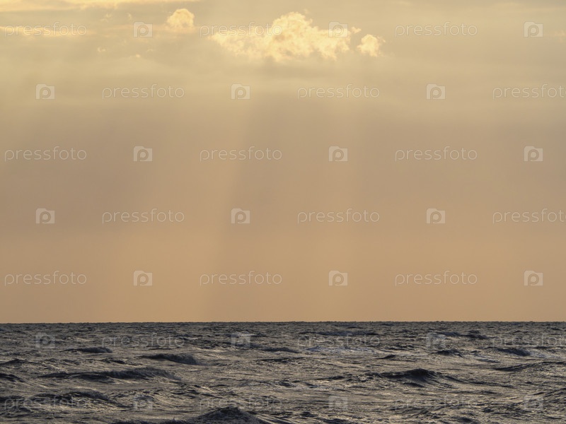 Желтоватое небо, освещенное лучами солнца над темным бурным морем
