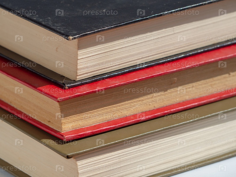 Старые пыльные книги в твердом переплете крупным планом, фокус на переднем плане низкая глубина резкости