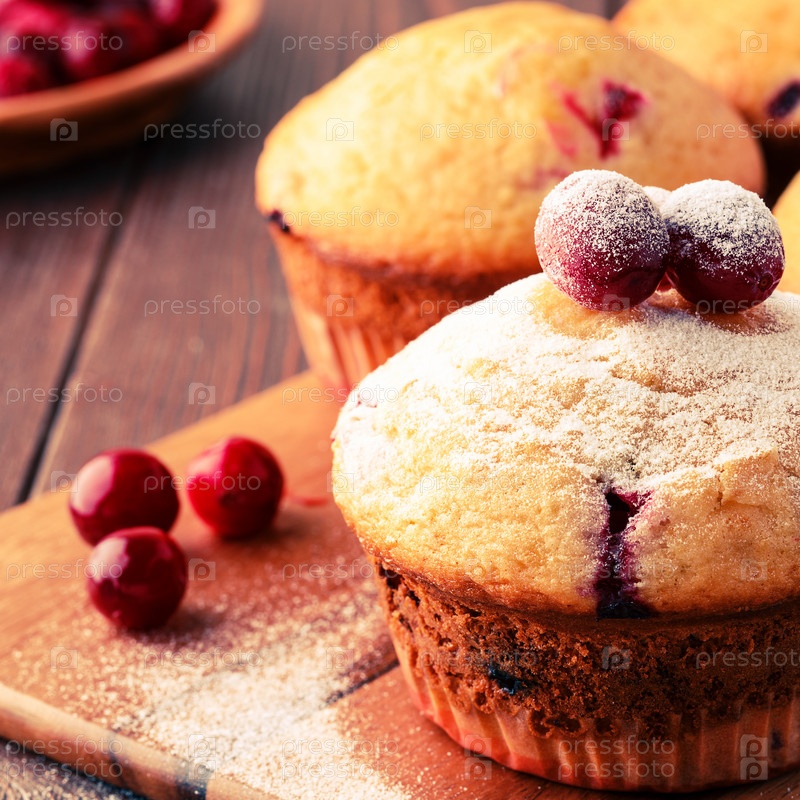 Кексы с клюквой на деревянном фоне