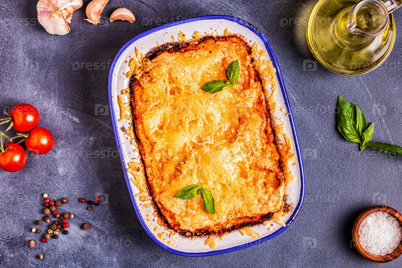 Традиционная итальянская лазанья с овощами, мясным фаршем и сыром