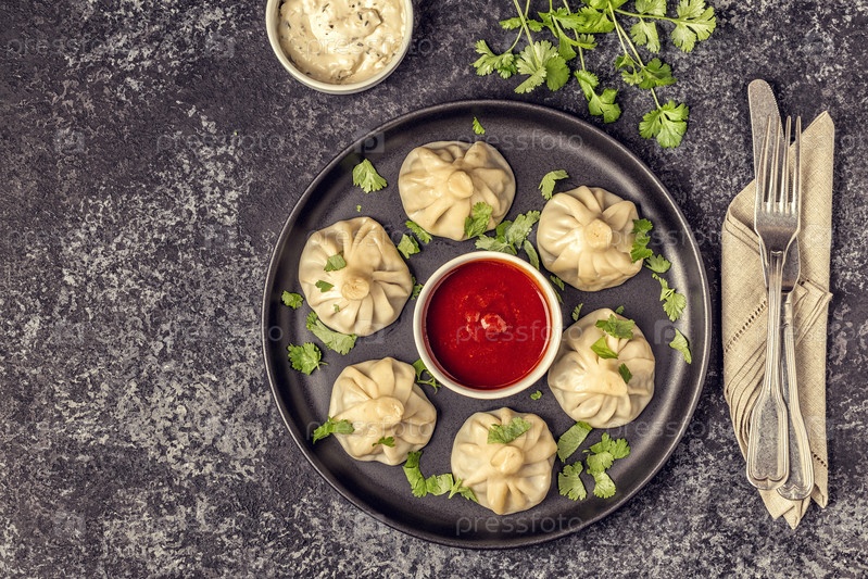 Традиционные вареники Хинкали на пару с томатно-тартарским соусом