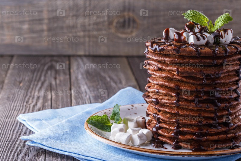 Стек блинов с зефиром и шоколадным сиропом
