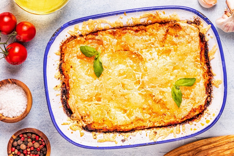 Традиционная итальянская лазанья с овощами, мясным фаршем и сыром