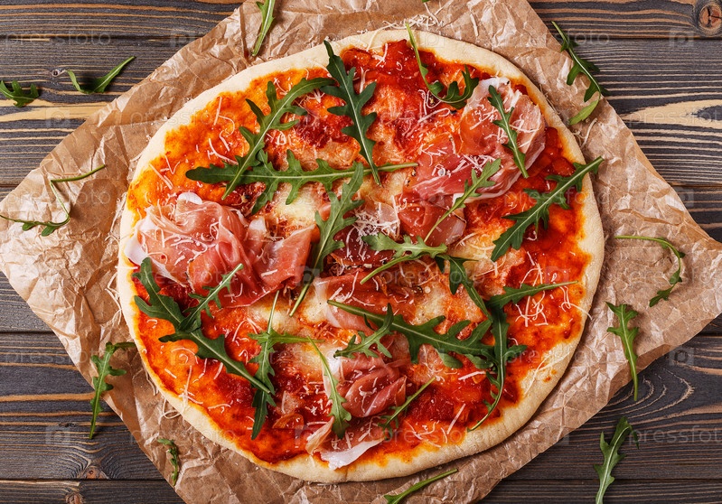 Домашняя пицца с прошутто и рукколой