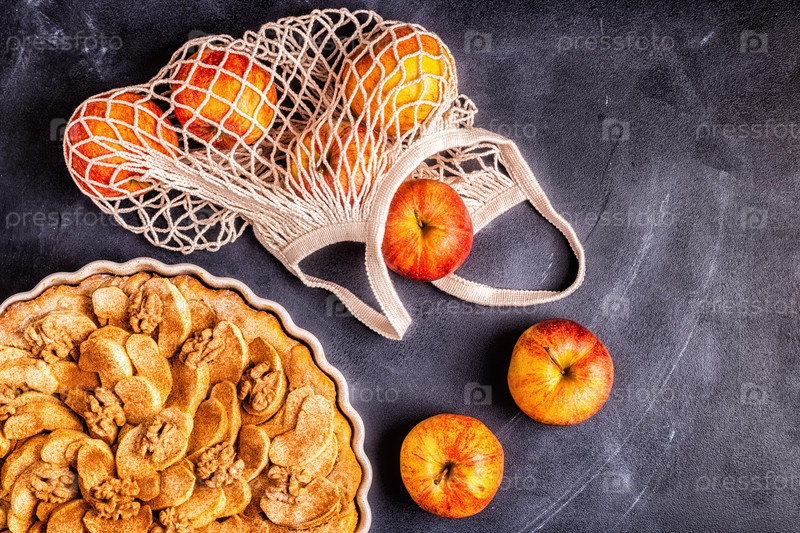 Яблочный пирог с грецкими орехами и корицей